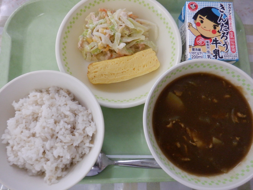 牛乳 チキンカレー (麦ごはん ルウ) 厚焼き玉子 ツナサラダ